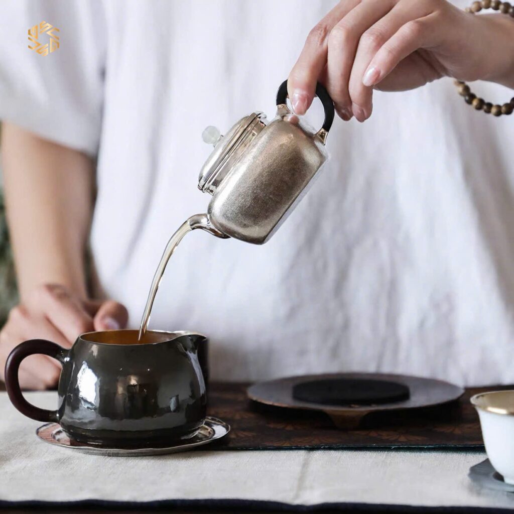 - Ấm bạc có tác dụng kháng khuẩn, giữ tươi mới và làm mềm chất nước. Danh y, nhà dược học nổi tiếng thời Minh – Lý Thời Trân đã viết trong “Bản thảo cương mục” rằng bạc có chức năng làm dịu ngũ tạng, giải tỏa tinh thần, giảm hồi hộp, bài trừ độc tố.
