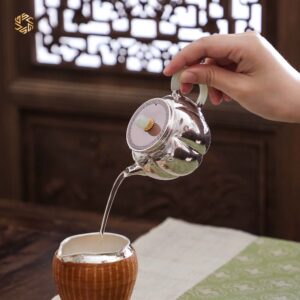 - Ấm bạc có tác dụng kháng khuẩn, giữ tươi mới và làm mềm chất nước. Danh y, nhà dược học nổi tiếng thời Minh – Lý Thời Trân đã viết trong “Bản thảo cương mục” rằng bạc có chức năng làm dịu ngũ tạng, giải tỏa tinh thần, giảm hồi hộp, bài trừ độc tố.