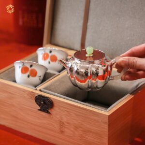 Review Ấm trà bạc chế tác thủ công tinh xảo ATB131