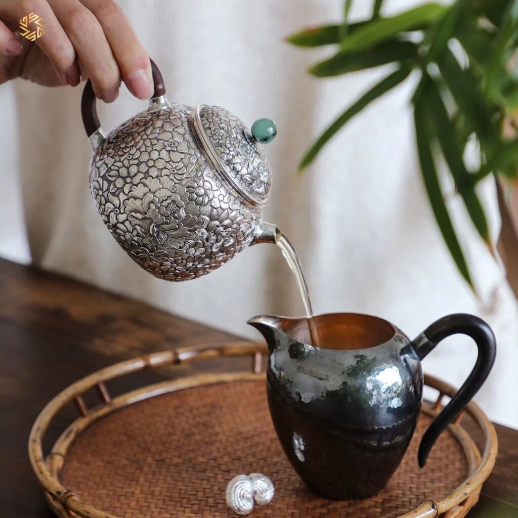 Review Ấm trà bạc chế tác thủ công tinh xảo ATB133