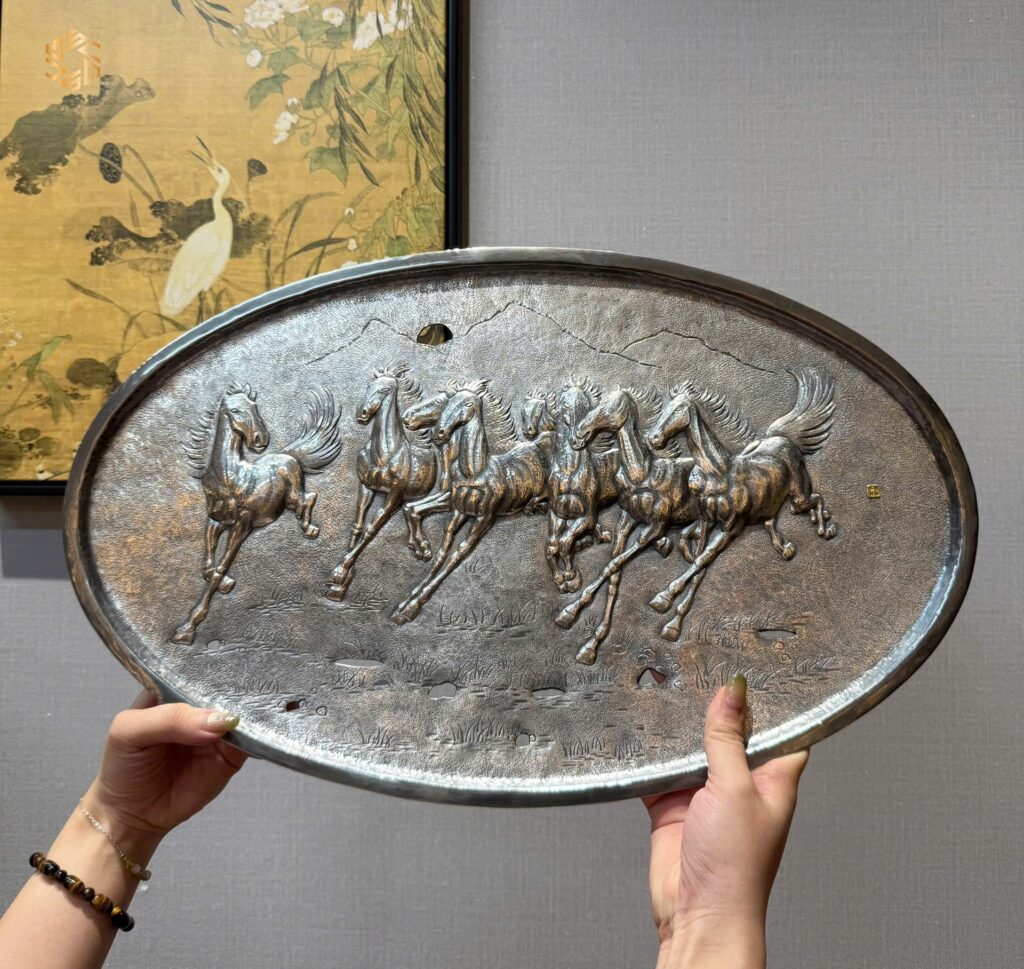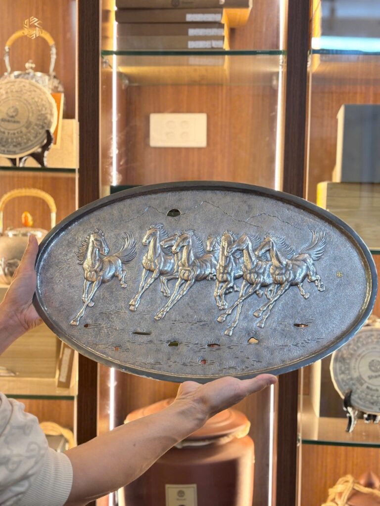 Review Khay Trà Bạc Hoạ Tiết Mã Đáo Thành Công